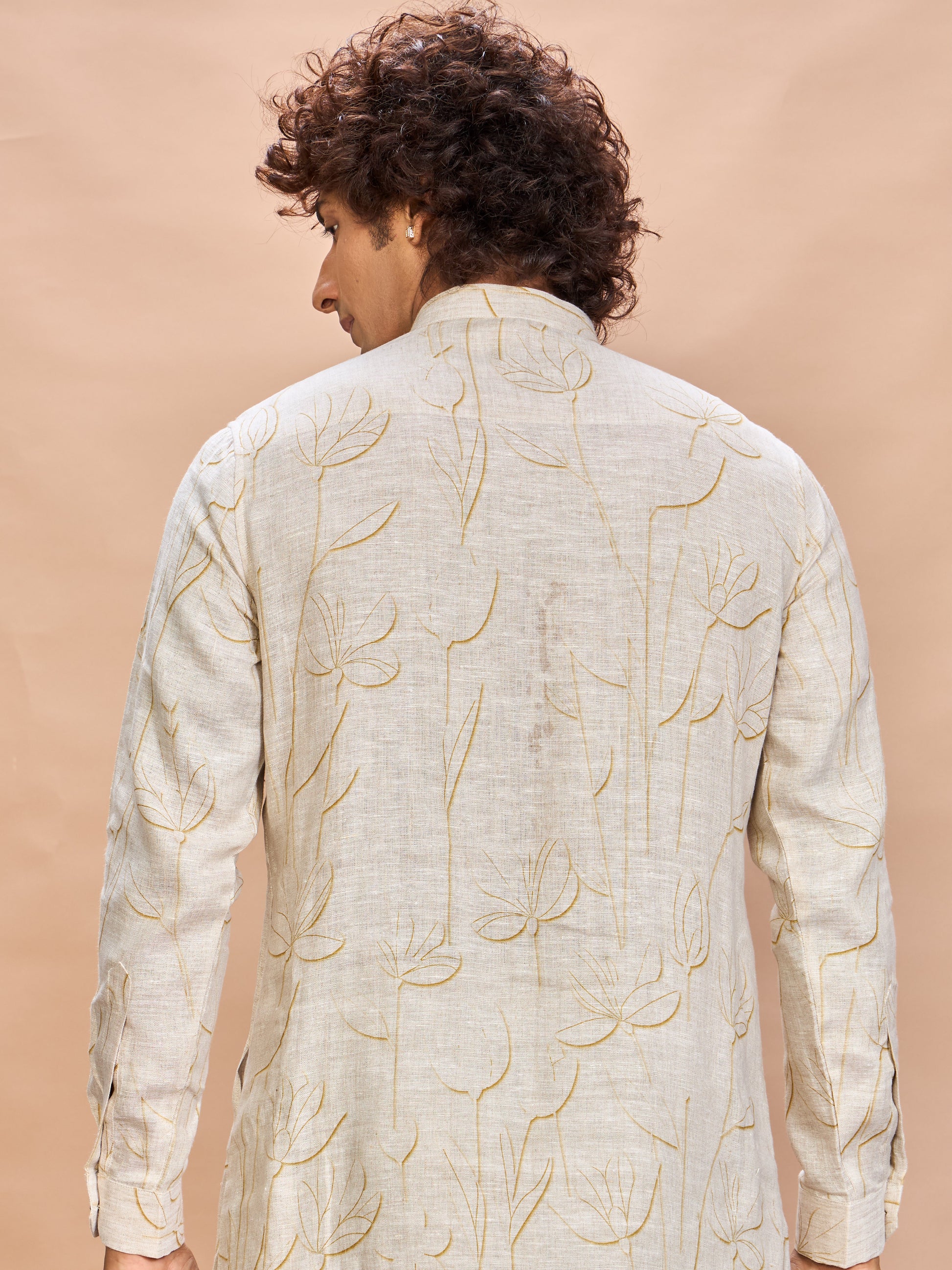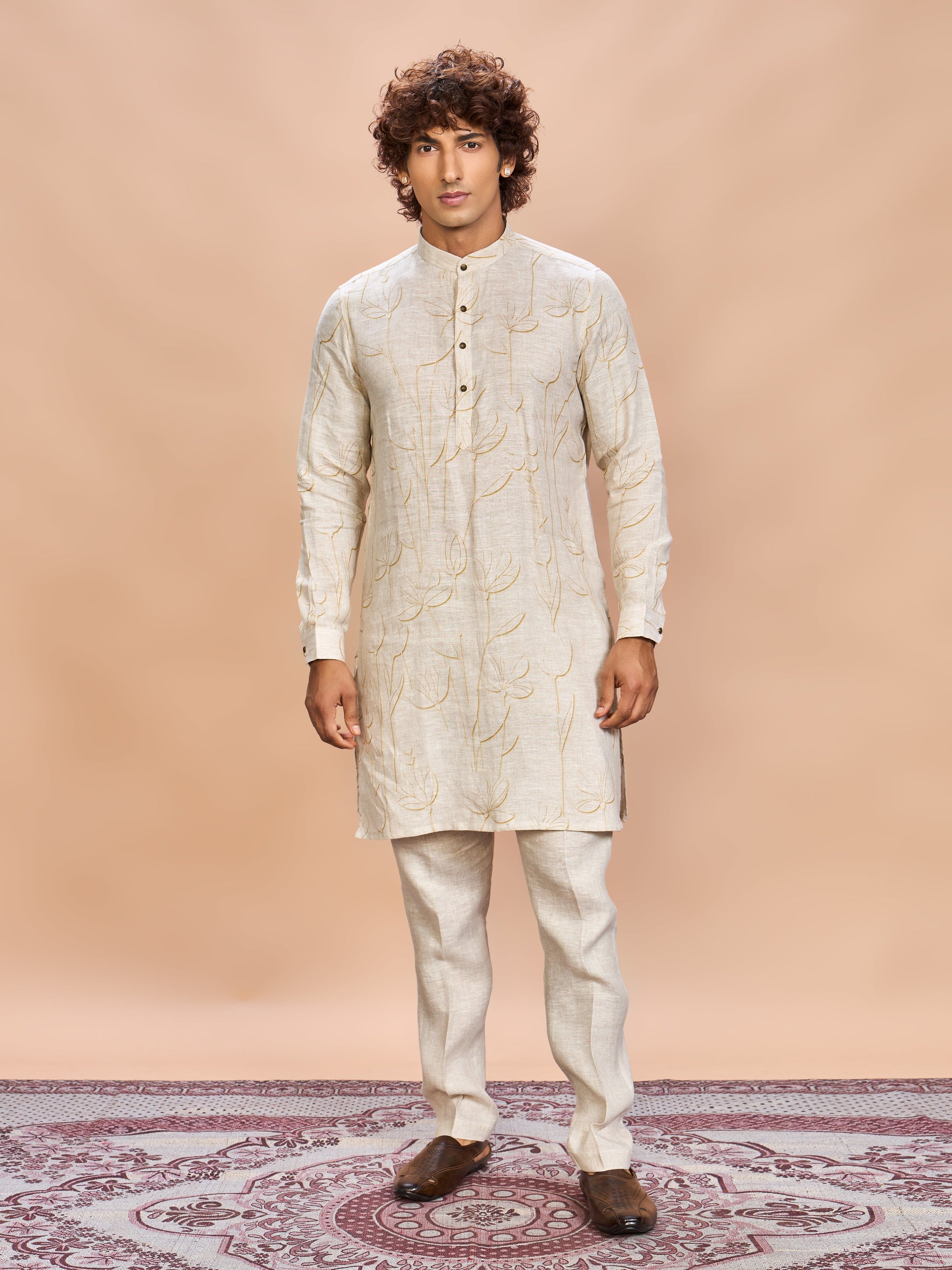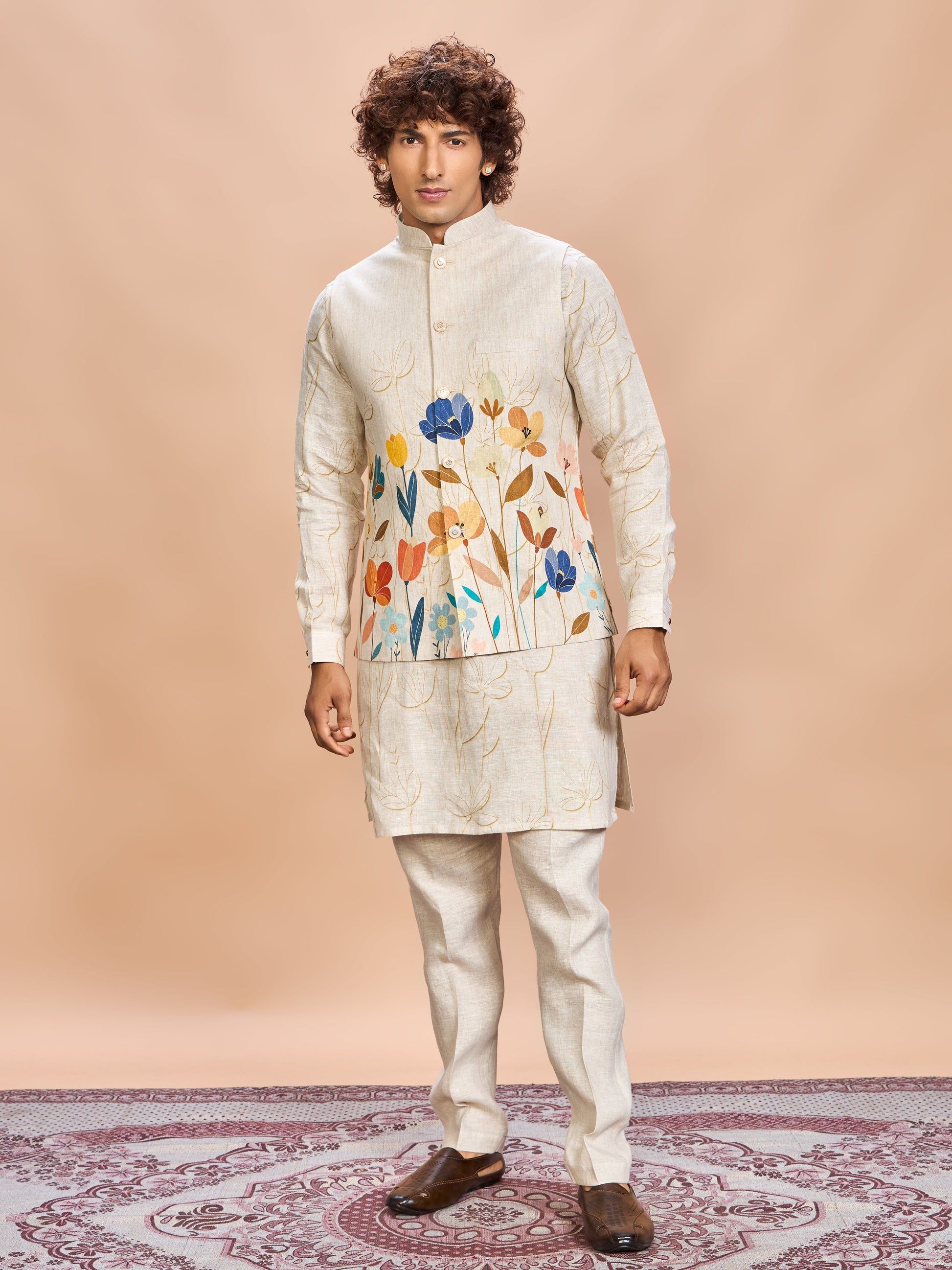 Art meets elegance — this linen floral jacket kurta set redefines festive fashion for the modern man.