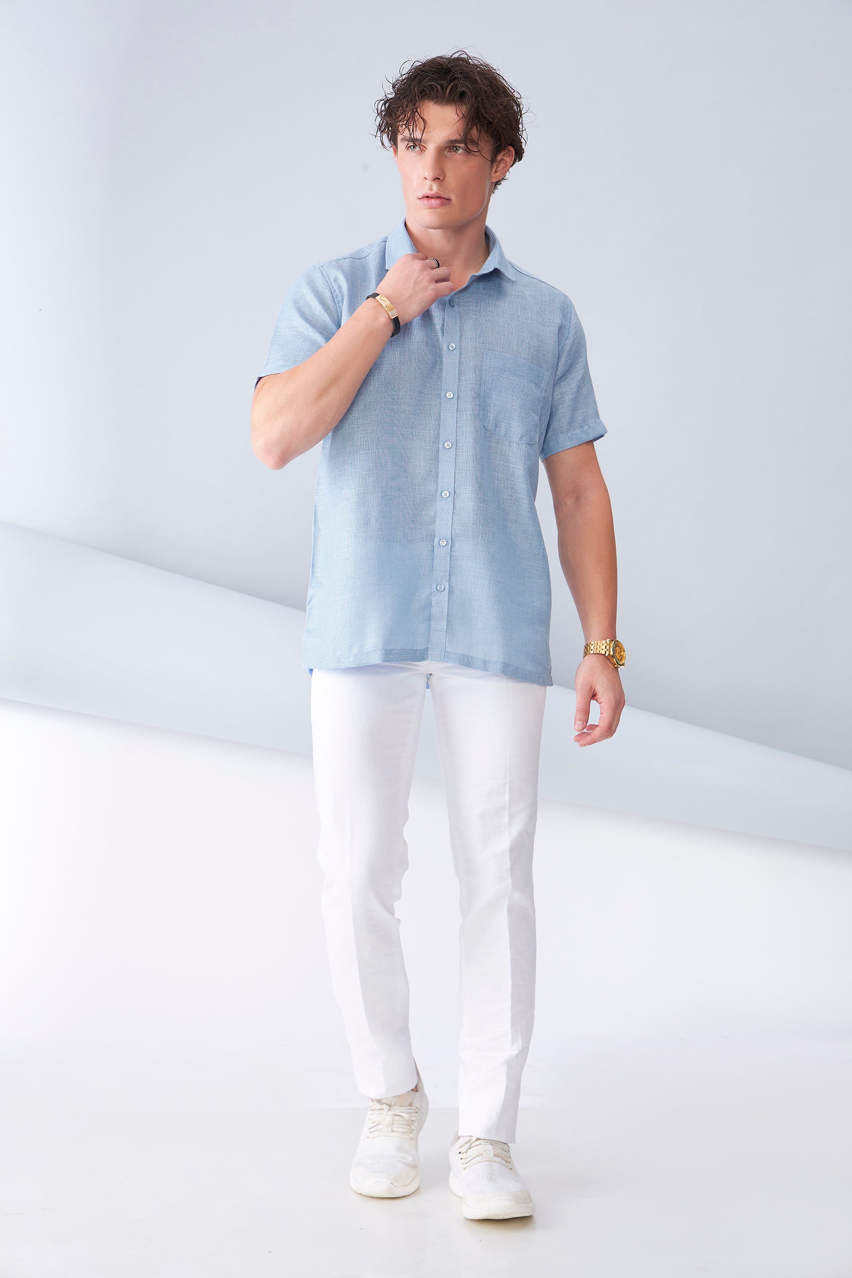 Made from premium organic linen, the Blue Half-Sleeve Shirt is a versatile addition to your wardrobe. With its breathable fabric and relaxed fit, it’s perfect for staying stylish and comfortable, whether worn on its own or layered for a smart-casual look.