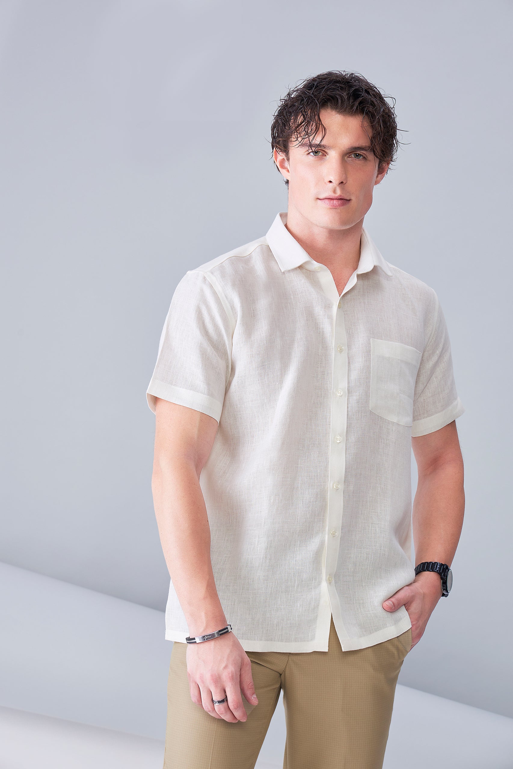 Sustainably crafted for the modern gentleman, our Cream Organic Linen shirt in a half-sleeve design combines natural comfort with effortless style. Made from 100% organic linen, this shirt offers breathability and a soft, lightweight feel, perfect for warm weather while maintaining a refined look.